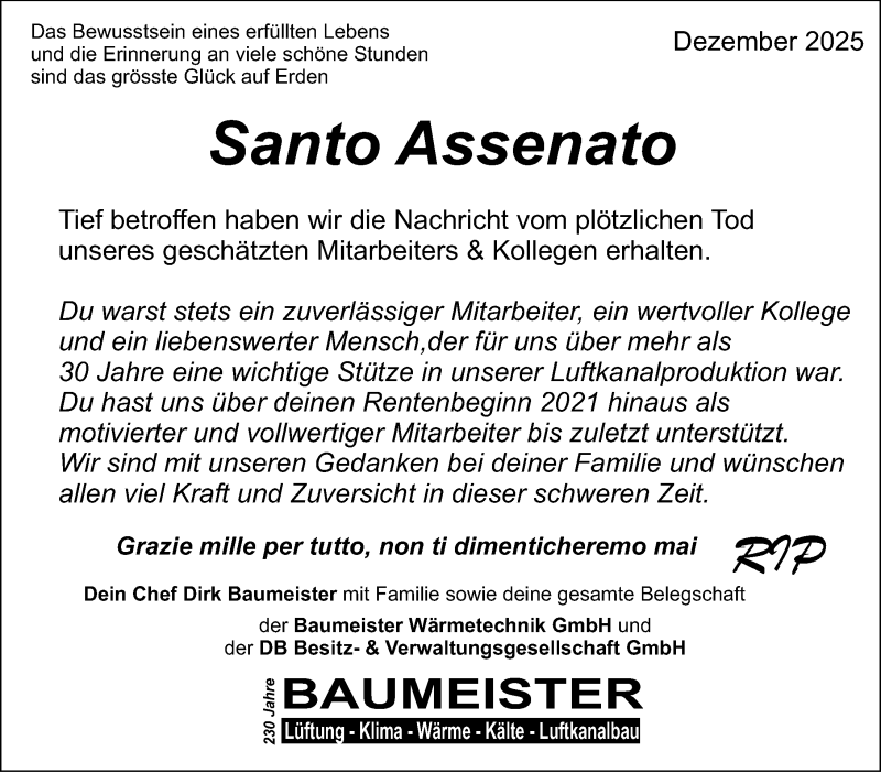 | Santo Assenato | gest. 2025 | mit 71 Jahren |